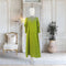 This stunning one-piece dress in a captivating patriot green shade is crafted from luxurious georget fabric, blending elegance and comfort seamlessly.