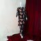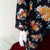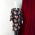 Floral print all over. Lace and stitching details are on the sleeves and bottom of the shirt, and the bead details are on the neckline.